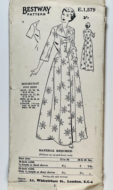Late 1940 S Vintage Sewing Pattern Ladies Housecoat Bestway E1579 Bust 36 9 50 Picclick Uk